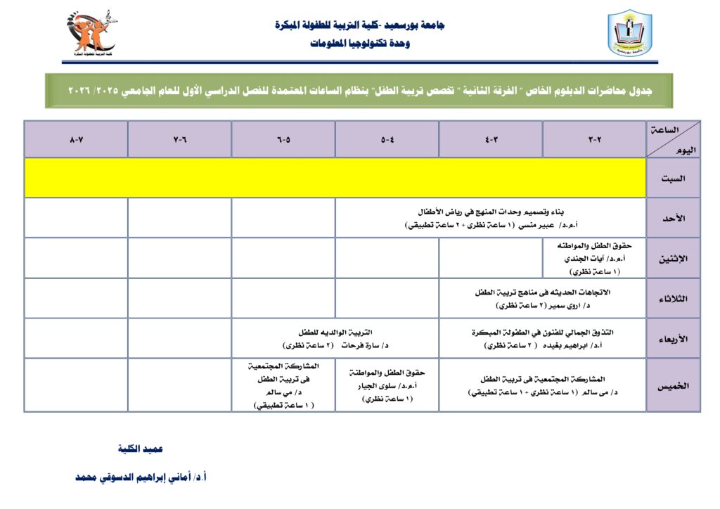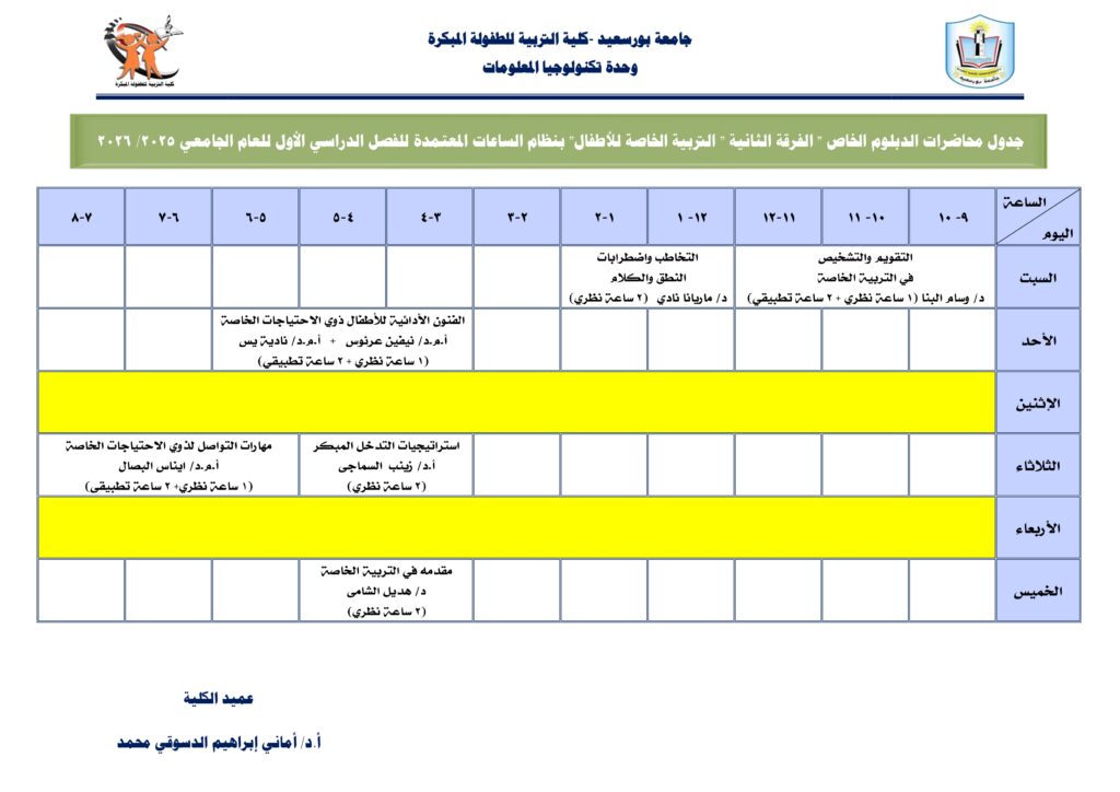 هام لطالبات الفرقة الثانية ( دبلوم خاص )