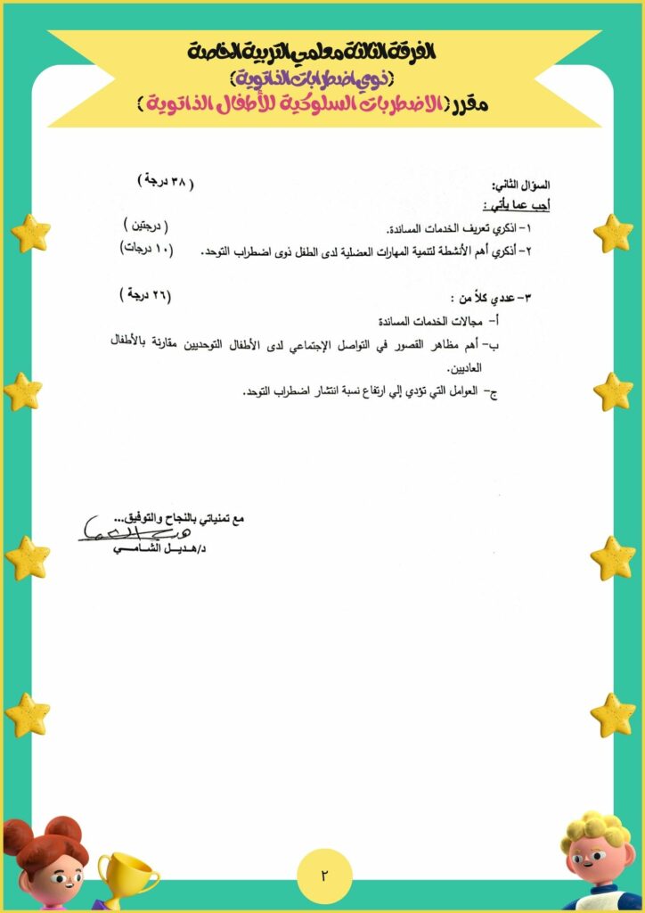 امتحان مقرر الاضطرابات السلوكية للأطفال الذاتوية الفصل الدراسي الأول 2023/2022 الفرقة الثالثة التربية الخاصة ذوي اضطرابات الذاتويةبواسطة Kind Author / يونيو 20, 2023