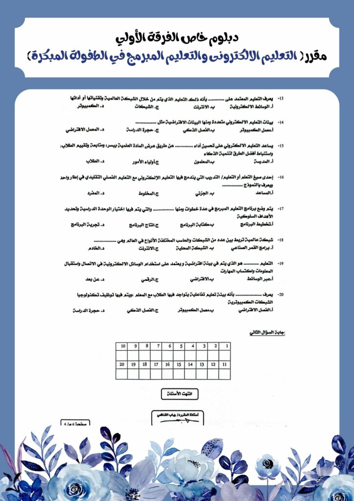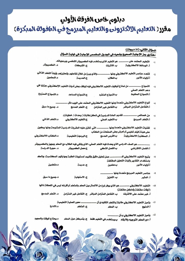 امتحان مقرر التعليم الالكترونى والتعليم المبرمج في الطفولة المبكرة الفصل الدراسي الثاني 2023/2022 دبلوم خاص الفرقة الأوليبواسطة Kind Author / أغسطس 20, 2023