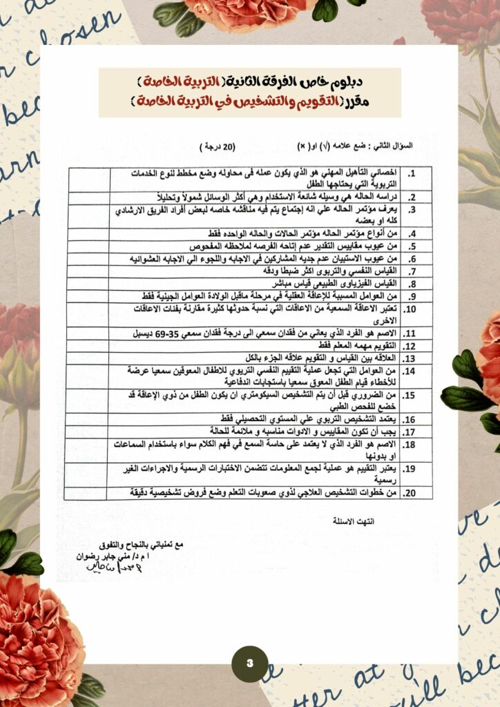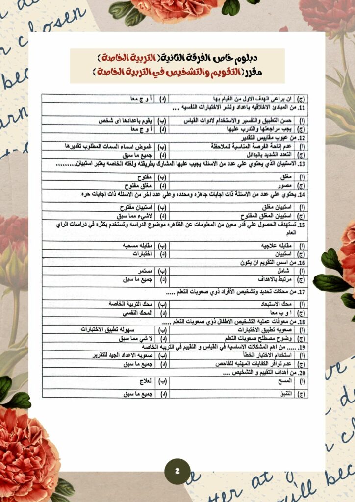 امتحان مقرر التقويم والتشخيص في التربية الخاصة الفصل الدراسي الأول 2023/2022 دبلوم خاص الفرقة الثانية التربية الخاصةبواسطة Kind Author / يونيو 18, 2023