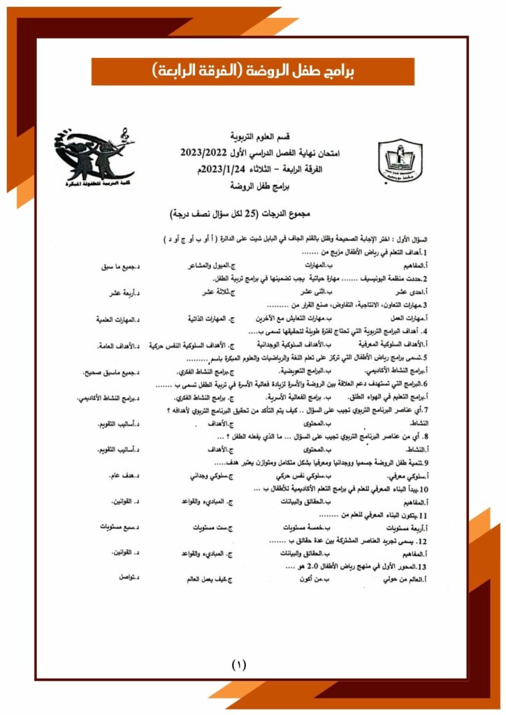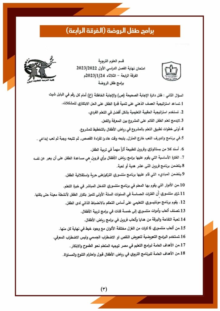 امتحان مقرر برامج طفل الروضة الفصل الدراسي الأول 2023/2022 الفرقة الرابعة رياض الأطفالبواسطة Kind Author / يوليو 1, 2023