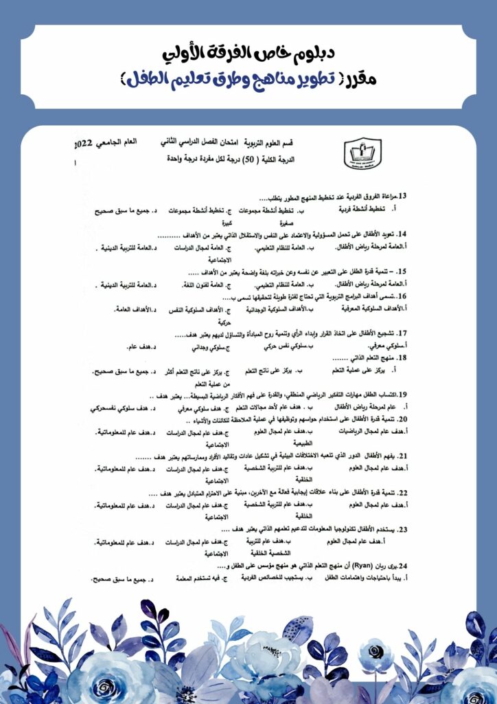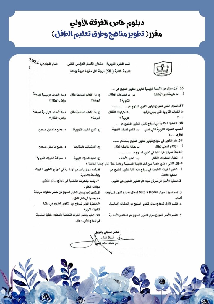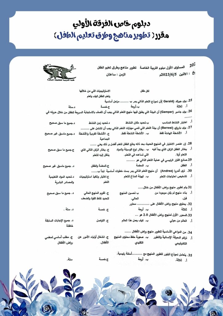 امتحان مقرر تطوير مناهج وطرق تعليم الطفل الفصل الدراسي الثاني 2023/2022 دبلوم خاص الفرقة الأوليبواسطة Kind Author / أغسطس 20, 2023