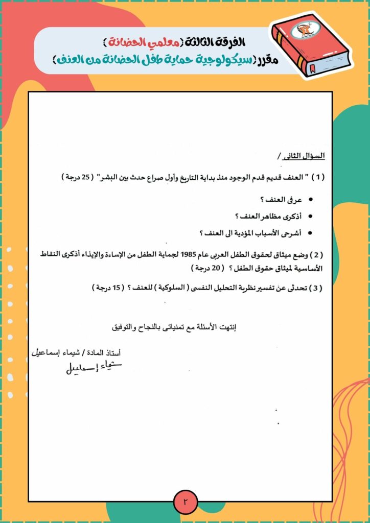 امتحان مقرر سيكولوجية حماية طفل الحضانة من العنف الفصل الدراسي الأول 2023/2022 الفرقة الثالثة (معلمي الحضانة)بواسطة Kind Author / يونيو 16, 2023