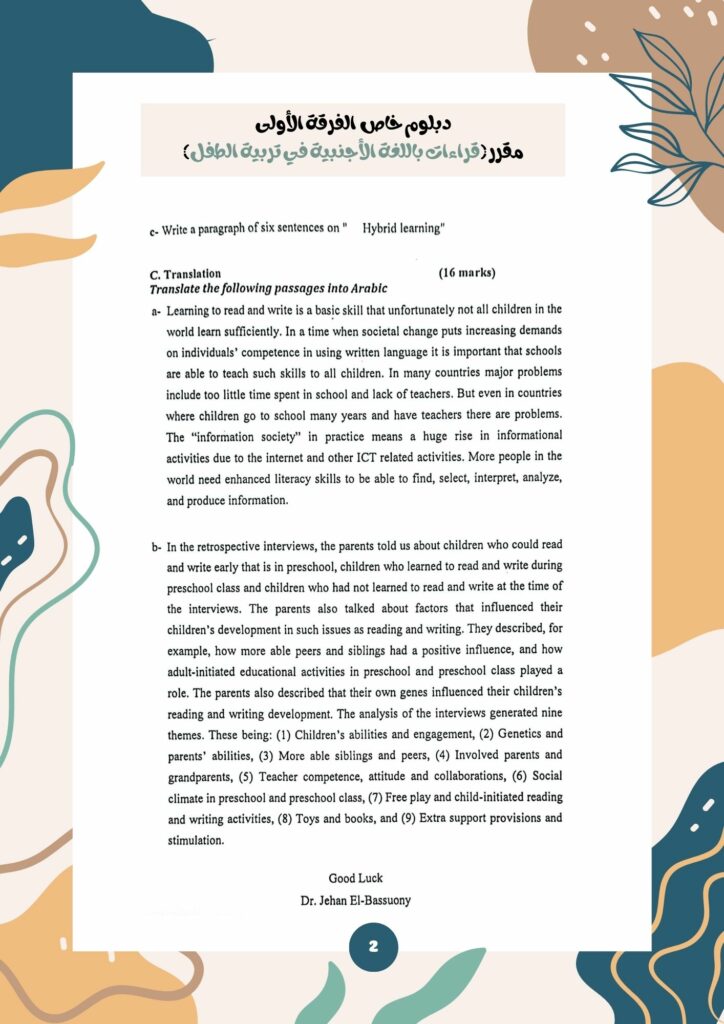امتحان مقرر قراءات باللغة الأجنبية في تربية الطفل الفصل الدراسي الأول 2023/2022 دبلوم خاص الفرقة الأولىبواسطة Kind Author / يونيو 18, 2023