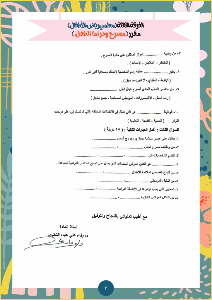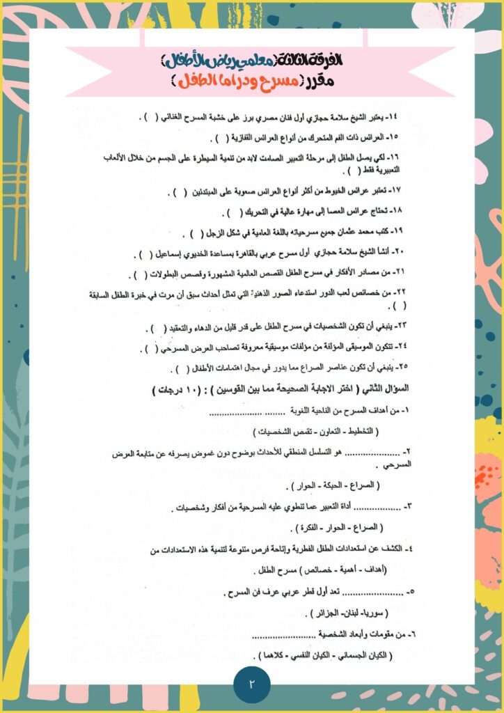 امتحان مقرر مسرح ودراما الطفل الفصل الدراسي الأول 2023/2022 الفرقة الثالثة رياض الأطفالبواسطة Kind Author / يوليو 1, 2023