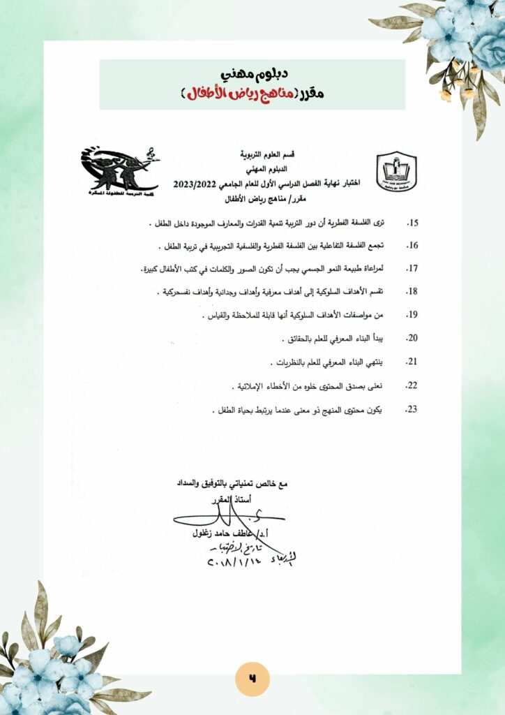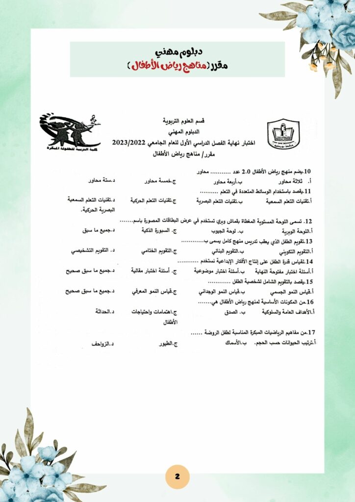 امتحان مقرر مناهج رياض الأطفال الفصل الدراسي الأول 2023/2022 دبلوم مهنيبواسطة Kind Author / يوليو 13, 2023