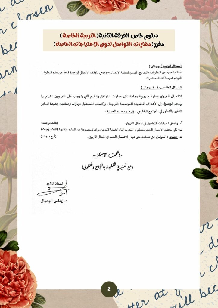 امتحان مقرر مهارات التواصل لذوي الاحتياجات الخاصة الفصل الدراسي الأول 2023/2022 دبلوم خاص الفرقة الثانية التربية الخاصةبواسطة Kind Author / يونيو 18, 2023