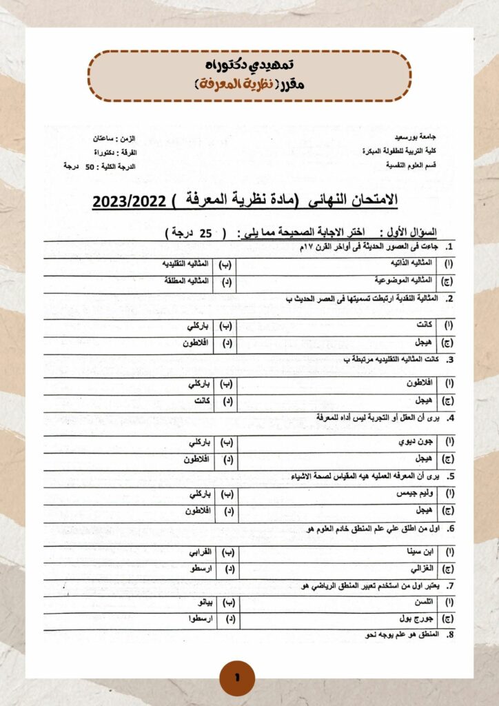 امتحان مقرر نظرية المعرفة الفصل الدراسي الأول 2023/2022 تمهيدي دكتوراهبواسطة Kind Author / يونيو 16, 2023