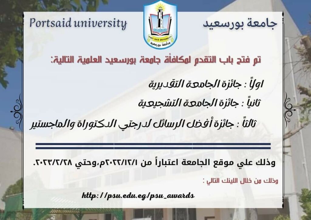 بدء التقدم لجوائز جامعة بورسعيد العلمية