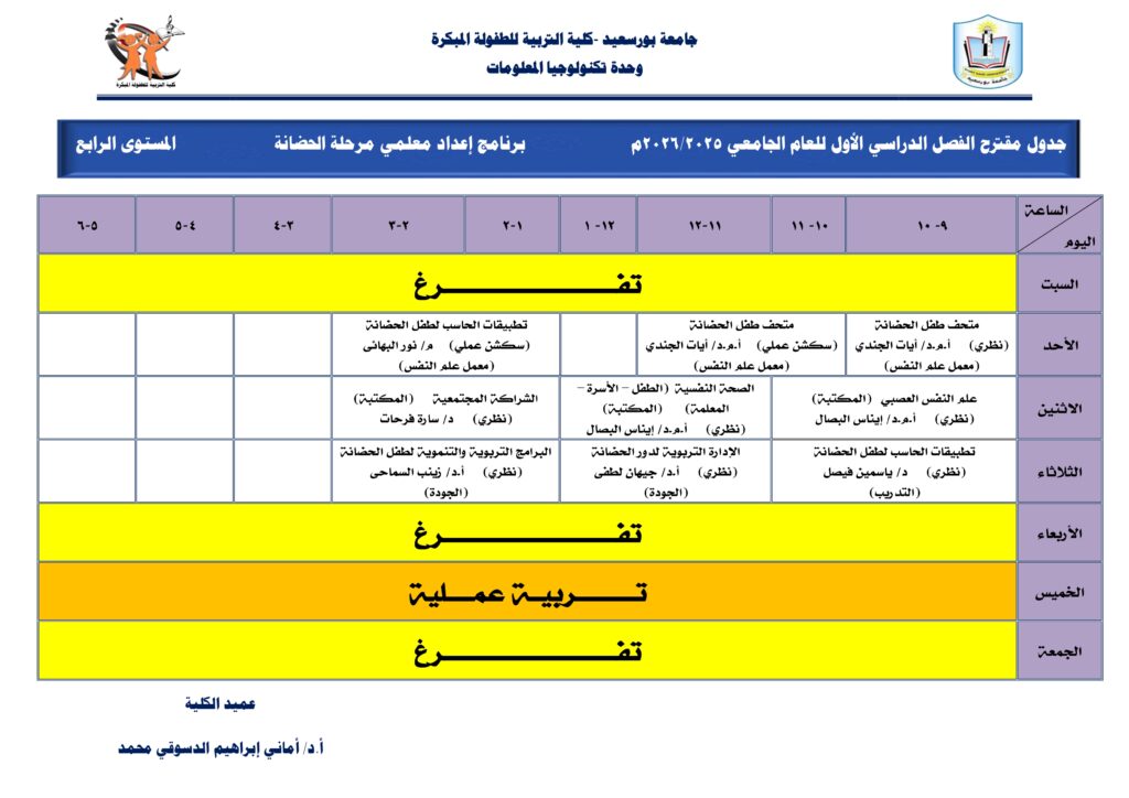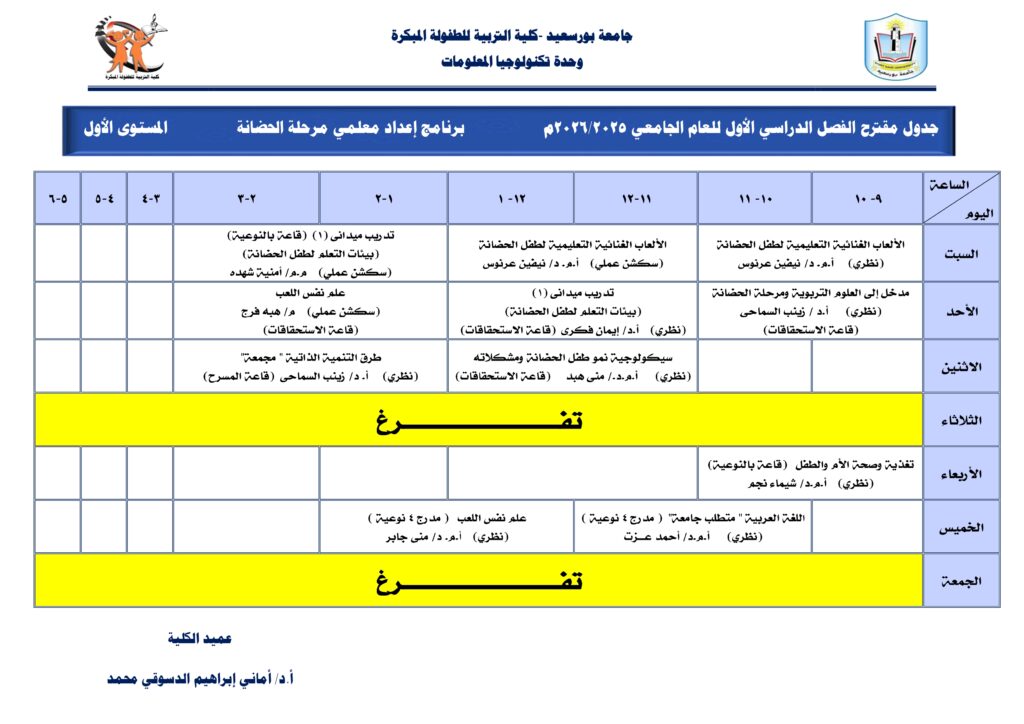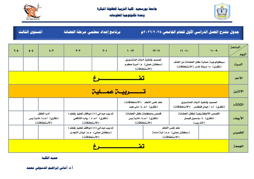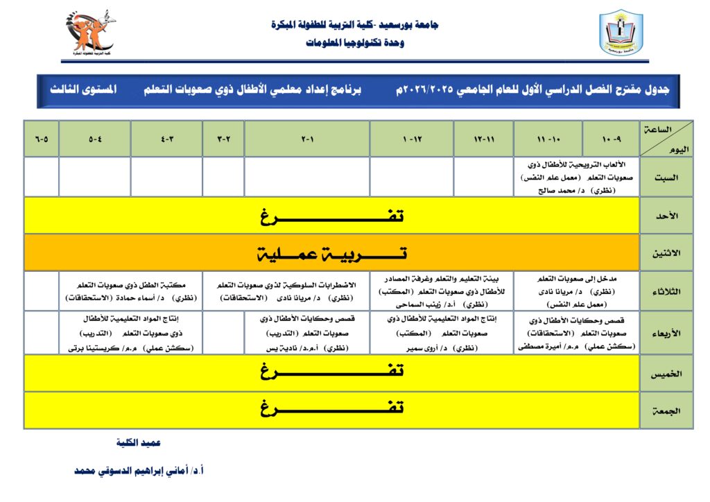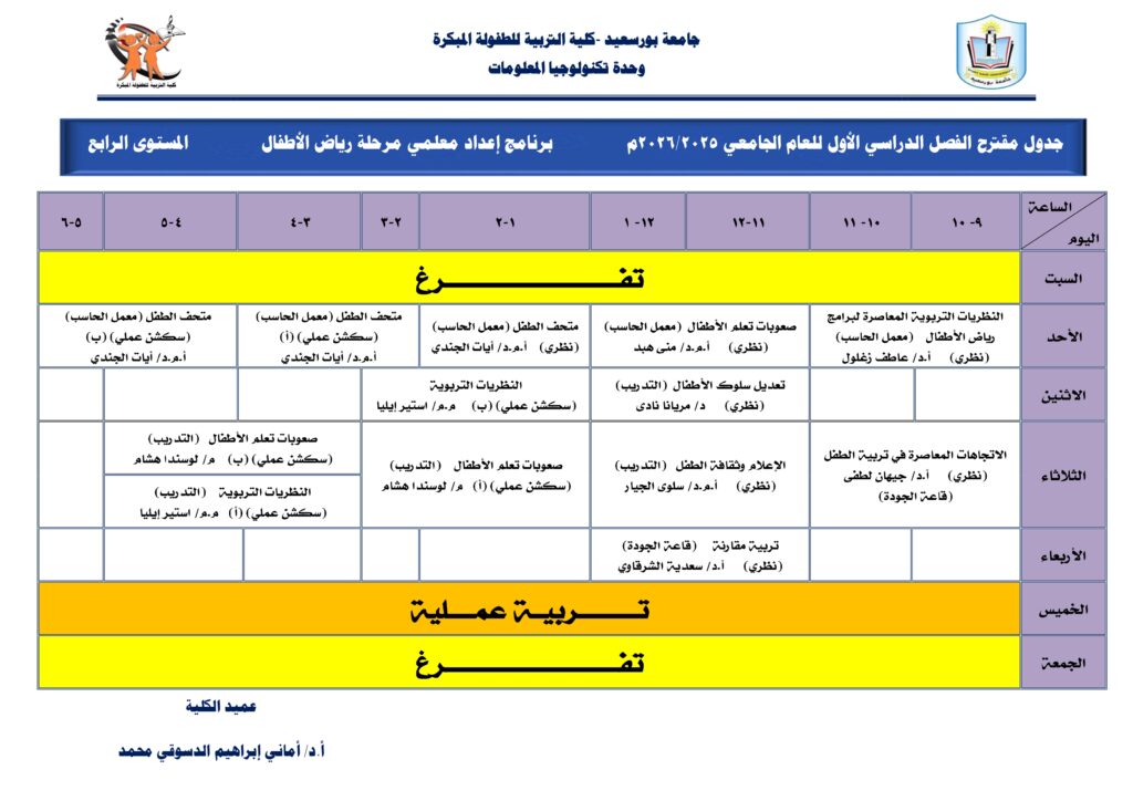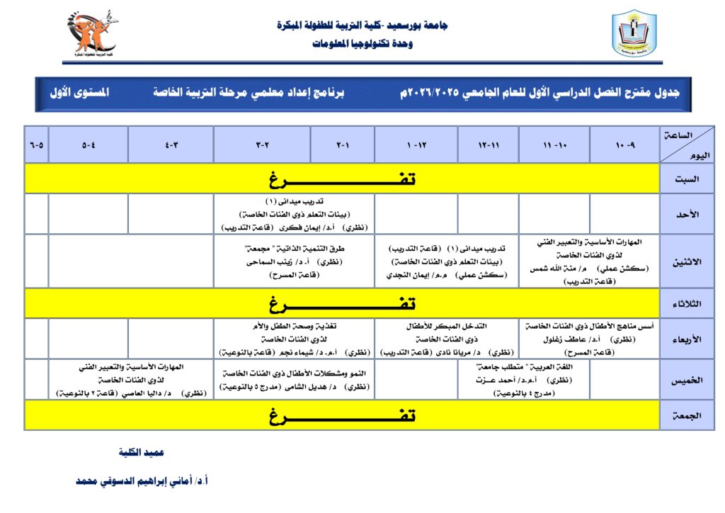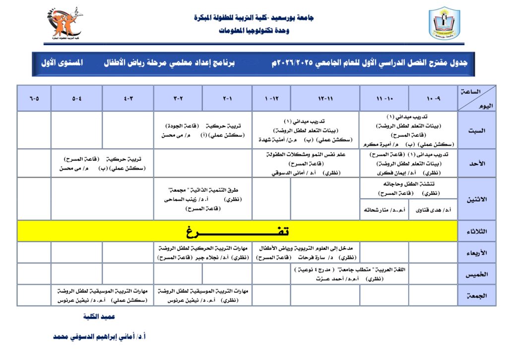 الجداول الدراسية الفصل الدراسي الأول للعام الجامعي 2025/ 2026