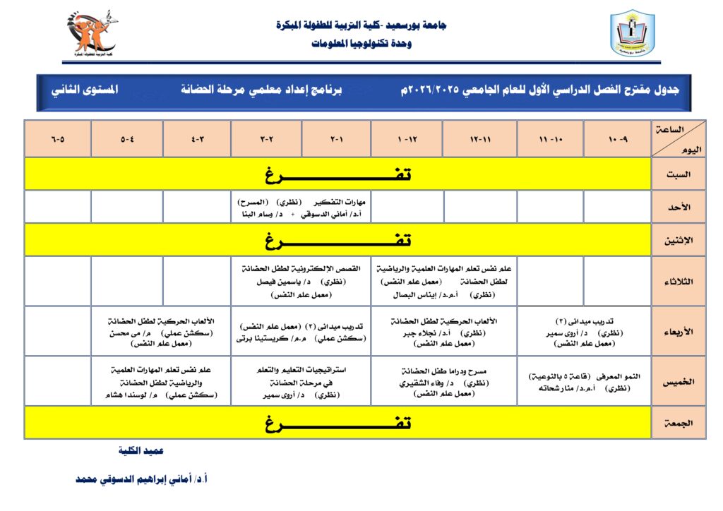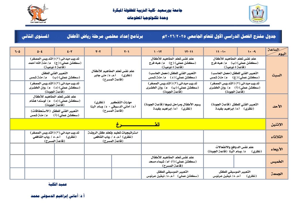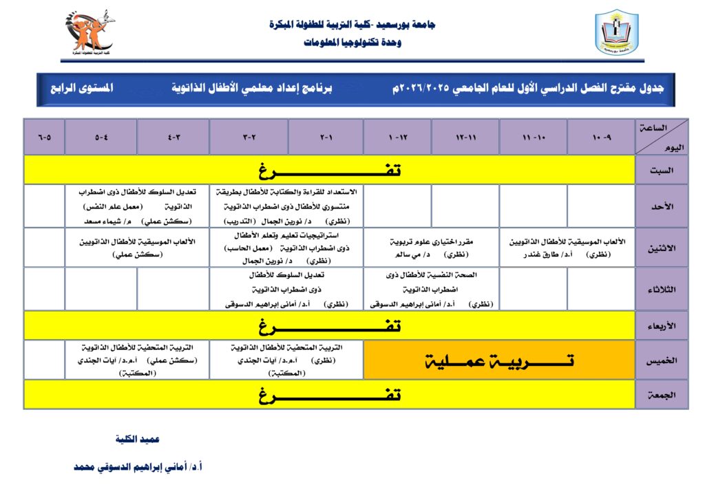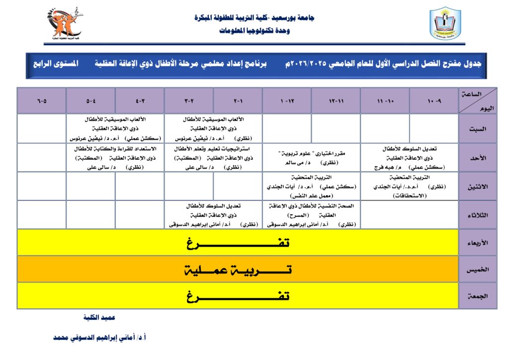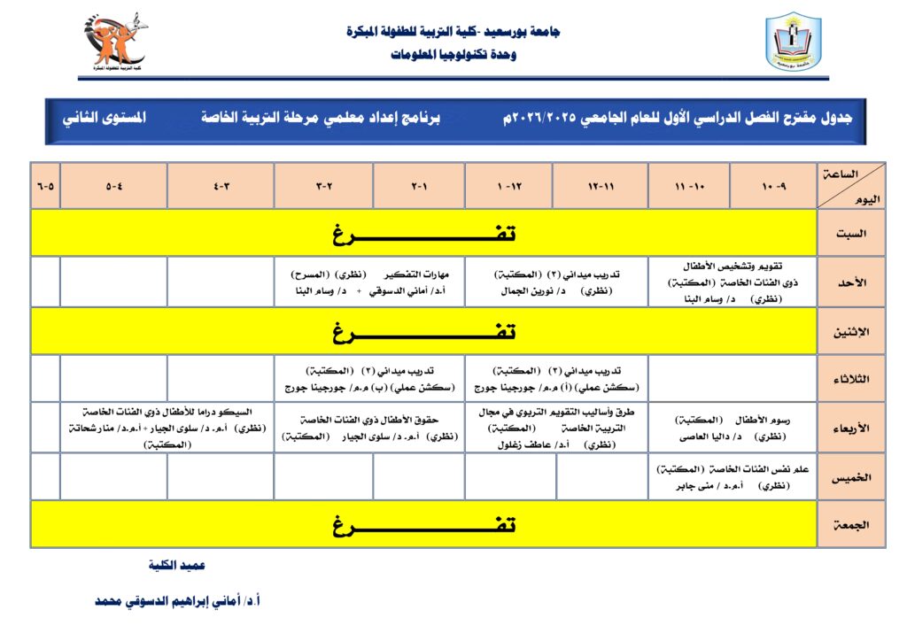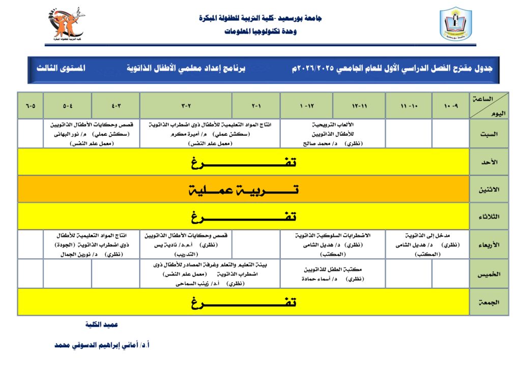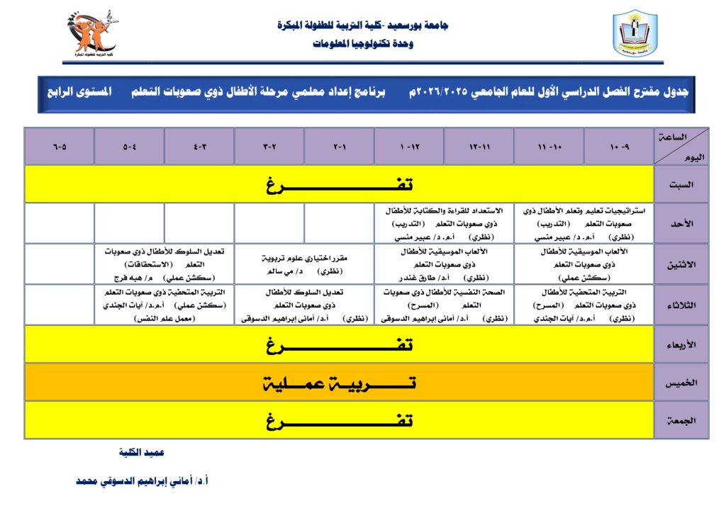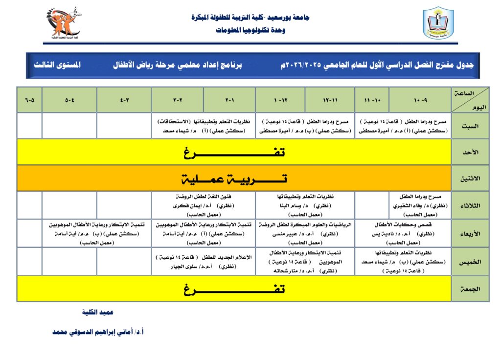 الجداول الدراسية الفصل الدراسي الأول للعام الجامعي 2025/ 2026